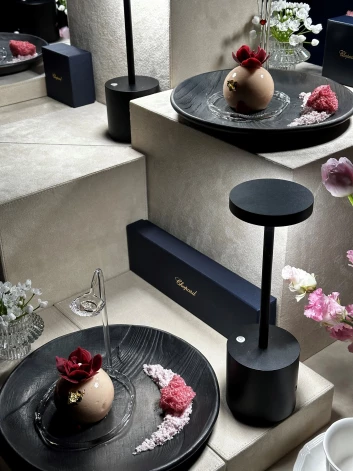 Slēgtā pasākumā Chopard klientiem un goda viesiem, tostarp Šveices vēstnieks Latvijā Martin Michelet ar kundzi un Thomas Hinteregger - Chopard zīmola pārdošanas direktors Austrijas un Austrumeiropas reģionam, un influenceriem tika prezentēts īpaši šai sadarbībai izstrādāts deserts.