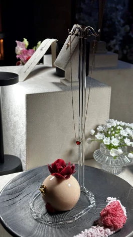 Restorānā deserts tiks pasniegts ar Jūsu izvēlētu rotaslietu no zīmola CHOPARD kolekcijas #MyHappyHearts.