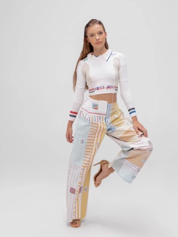 Autorei kolekcijas «Lauztie ziedi» iecere radās, domājot par tekstila izstrādājumu pārprodukciju un to, ka aizvien vairāk apģērbu nonāk atkritumos. Tērpos lielākoties tiek izmantotas nevajadzīgas, brāķētas drēbes un audumu atgriezumi, ko Zaiga aicināja ziedot vairākiem Latvijas apģērbu ražotājiem. Viens no darbiem — ielāpu (patchwork) stila bikses — šūts, izmantojot lietotus vīriešu vintāžas kreklus un izceļot 1960.–1980. gadu apģērbu birku grafikas dizainu.
