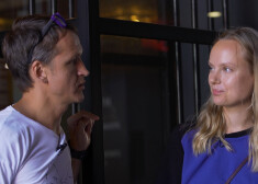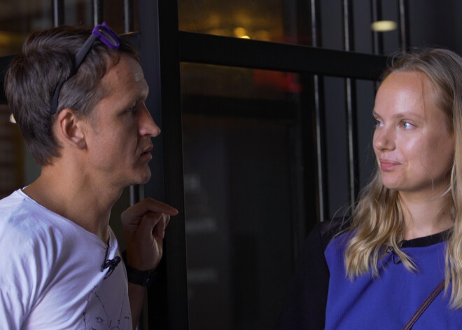 Intars Rešetins ciemos pie modeles Luīzes Salmgriezes