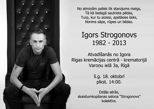 Portāls Kasjauns.lv izsaka visdziļāko līdzjūtību Igora Strogonova tuviniekiem, draugiem, kolēģiem un klientiem.
