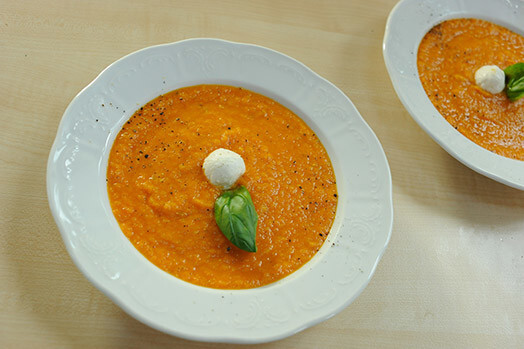 Sagrieztus sīpolus, puravus un uz rupjās rīves sarīvētu burkānu kopā ar sagrieztām ķiploka daiviņām un timiānu liek cepties sakarsētā olīveļļā. Pievieno sagrieztus tomātus, daļu no bazilika, nedaudz apcep un sablenderē. Pēc garšas pievieno sāli, piparus; ja grib sātīgāku zupu, arī saldo krējumu.