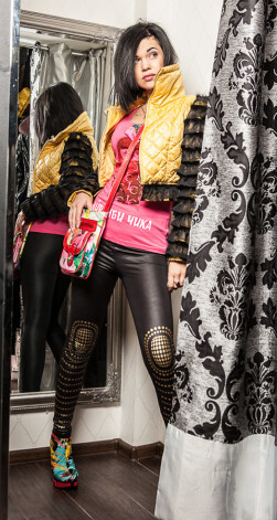 Savu stilu neveidoju ne pēc modes žurnāliem, ne reklāmām. Tas veidojies neapzināti, vadoties pēc sajūtām. Mans stils – tā esmu es, mans raksturs un pasaules uztvere. Man nekad nav bijis svarīgi, kas ir modē, taču vienmēr esmu izpaudusies radoši. Jau skolas laikā ģērbos nedaudz crazy stiliņā. Sagriezu tīkliņzeķbikses un vilku uz rokām, pati šuvu cimdus, izgatavoju somas. Man jau tolaik patika atšķirties no citiem. Dzīvoju Tukumā, un tur nebija daudz veikalu un plašas apģērbu izvēles, taču nopirkto gandrīz vienmēr pārtaisīju pa savam. Arī tagad pati sev esmu dizainere – lielākoties dodos pie šuvējas un pasūtu tērpus, nevis pērku tos veikalā. Es nevēlos, lai kādai būtu mugurā tas pats, kas man.