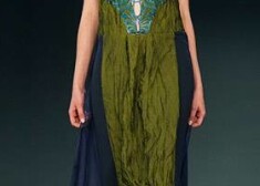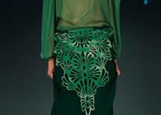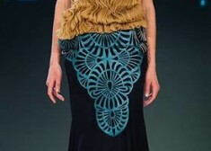Savukārt Kristiāna Kalniņa prezentēja kolekciju ar trāpīgu nosaukumu Kaleidoskops, kurā dominēja krāsaini, sarežģīti un dzīvespriecīgi raksti – mākslinieces autordarbs. Krāsainība izpaudās it visur. Pat zem garās, baltās kleitas, ar kuru skate noslēdzās, bija mānāmi rakstaini legingi, bet uz rokas - krāsaina rokassprādze.