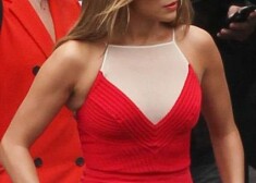 Pirms dažām dienām Lopesa uz TV šova ieraksta telpām devās piegulošā ugunīgi sarkanā kleitā. Viņa gan izskatījās mazliet norūpējusies par tērpa kritumu. Dodoties no treilera uz studiju, viņa ne uz mirkli nepasmaidīja. Latino dīva tikai ik pa brīdim koriģēja kleitu, nedaudz pavelkot uz leju sakrokojušos audumu.
