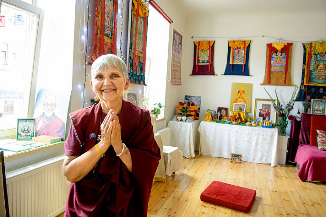 – Par mūķeni kļuvu tikai pirms sešiem gadiem, kad, sešdesmit gadu vecumā aizgājusi priekšlaicīgā pensijā, aizbraucu uz Nepālu. Pirms tam, protams, atbrīvojos no visām materiālajām piesaistēm. Izdalīju savu plašo bibliotēku. Atdāvināju draugiem un tuviniekiem mēbeles, apģērbu, mākslas priekšmetus. Katmandu klosterī mācīju mazajiem mūkiem angļu valodu. Brīnišķīgi, zinātkāri, talantīgi bērni vecumā no 6 līdz 14 gadiem. Tur kuplo ģimeņu vecāki bieži nodod vienu no bērniem klosterī, jo tā ir kvalitatīva bezmaksas izglītība.