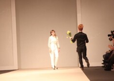 Publika ar skaļām ovācijām sveica mākslinieci Žaneti Auziņu pēc viņas jaunākās tērpu kolekcijas modes skates.