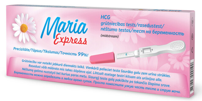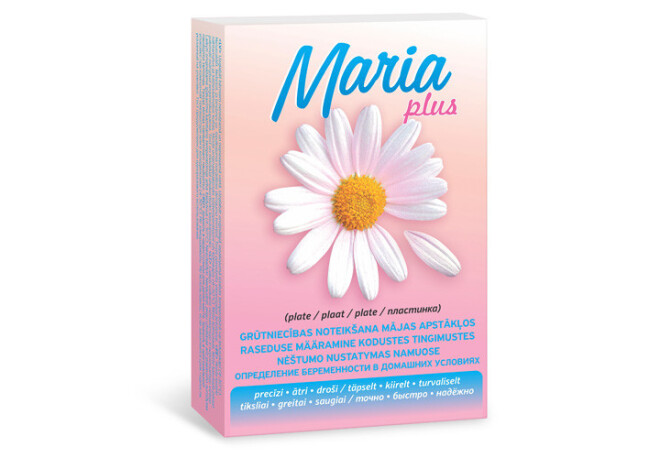 Maria Plus – HCG tests grūtniecības noteikšanai. Tā ir taisnstūrveida plate, kurai ar pipeti jāuzpilina 3 pilieni urīna. Ar šī testa palīdzību grūtniecība tiek noteikta ļoti agrīnā stadijā – apmēram 10 dienas pēc olšūnas apaugļošanās.