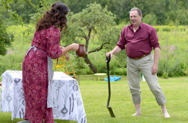 Es cenšos ar sevi strādāt. Tagad trīs nedēļas no rīta līdz vakaram ir mēģinājumi izrādei. Spēka nav mājās pārnākt, kur nu vēl sportot vai braukt ar velosipēdu. Kad sākas sezona, tad gan cenšos divreiz nedēļā iet uz sporta zāli, tur paspēlēju tenisu, paskrienu, “pakačājos”. Smagumus cilāt jau nevaru, jo mugura ir beigta, disks nāk ārā! (Abi smejas.) Griba jau ir, bet spēka nepietiek.