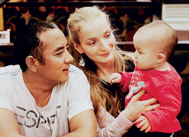 – Viņš ir tibetietis no Nepālas. Pirmajā reizē, kad satikāmies, man šķita, ka es viņam galīgi nepatīku, jo viņš nevarēja man pat ieskatīties acīs. Izrādījās, viss bija citādi. No tā brīža viņš bija sācis domāt, kā lai iekaro manu sirdi. Ilgi tas nebija jādara. Karmiskais spēks bija tik liels, ka mēs nebijām vairs atraujami viens no otra. Sākās ziepju operas cienīgi notikumi starp divām valstīm – viņš lidoja šurp, es lidoju uz Indiju, beigās, pēc vairāk nekā gadu ilgas melodrāmas, apprecējāmies, un pēc mēneša jau pieteicās mūsu meita Sofija. Indiju un Nepālu esmu izbraukājusi krustu šķērsu. Tā kā vīrs ir no Katmandu, tad lielāko Nepālas daļu mēs apbraukājām ar viņa motociklu. Tagad abi atceramies, ka manā sestajā grūtniecības mēnesī braucām uz Pokharu. Tagad droši vien neko tik traku es nedarītu.