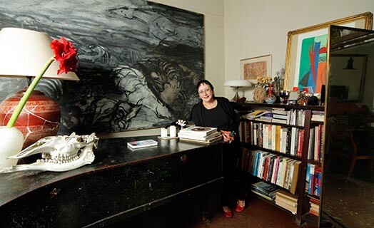 „Esam lasoša ģimene. Vienīgais pirkums, kam nevajag attaisnojuma, ir grāmata. Par pārējiem aizbildinos – man tos vajag inspirācijai. Arī, kad pārvedu mājās spoguli, kas tagad grāmatplauktam priekšā, jo īsti to pat novietot nav, kur. Labi, ka uz riteņiem. Nopirku, to neredzot, pēc fotogrāfijas, ko draudzene parādīja. Dzērām šampanieti un viņa teica: „Tev vajag.” Ļoti labi! Spogulis sver 100 kilogramu. Kungs, kas viņu pārdeva, ir no Francijas un Eiropas kinostudijas apgādā ar autentiskām lietām. Spogulis ir pilnīgi oriģināls Art Deco, tam pat aizmugurē ir speciāla zīmīte. Šausmīgu naudu par to samaksāju. Taču tagad var sēdēt uz dīvāna, skatīties grāmatas un tajā spogulī visu redzēt.