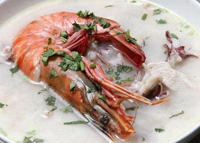 Liek katlā vārīties ūdeni, kurā iemet vistas buljona kubiciņus. Vistas fileju sagriež nelielos gabaliņos, apcep uz pannas un liek katlā vārīties. Smalkos gabaliņos sagriež ingveru un citronzāli, uz pannas apcep un liek katlā vārīties. Zupai pievieno ½ citrona sulu. Kad viss mazliet apvārīts, zupai pievieno jūras veltes. Pēc īsa brīža pieliek kokosriekstu pienu, pievieno sāli, un zupa ir gatava! Zupu lej šķīvī un virsū kaisa kinzu.