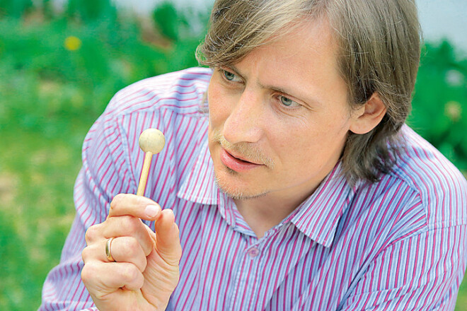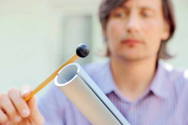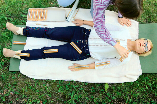 Māris uz galda izkārto čakrafona stienīšus un viegli uzsit pa tiem ar speciālām nūjiņām. Dažas skaņas atgādina vēja zvanus un tīkami ieaijā, dažas burtiski ielaužas galvā, es ar plaukstām aizsedzu ausis. “Jo izteiktāks prāta cilvēks, jo grūtāk pieņem šos toņus. Tā skan Visums,” paskaidro skaņas terapeits. Visumā valda klusums, iebilstu. “To, kā Kosmoss vibrē, mēs nespējam sadzirdēt, tomēr skan viss – arī mēs, katra mūsu šūna,” nepadodas Māris. “Kad tu ar roku uzsit pa ūdens virsmu, veidojas vilnis. Viļņiem satiekoties, rodas mijiedarbība. Līdzīgi čakrafons iedarbojas uz mūsu iekšējo vibrāciju.”
