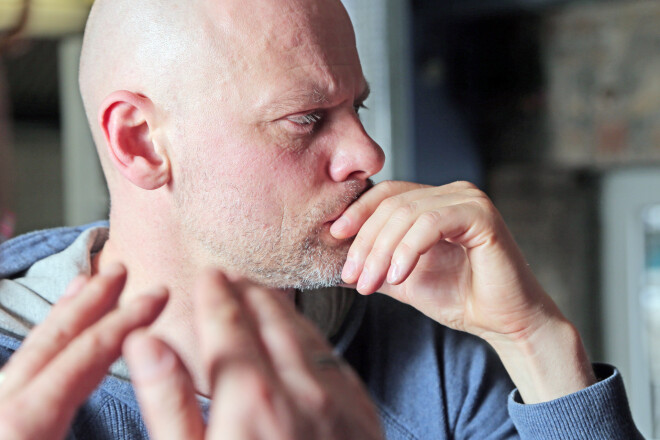 Nu… reizēm. Es pat dažreiz tīru kaķa kasti, vācu vēmekļus no rītiem. Jo esmu pirmais, kas tumsā iet uz darbu, līdz ar to varu būt pirmais, kas tajā vēmeklī iekāpj un besās. Un es nekad sievai nesaku: „Es taču teicu!” Jo viņa pati ļoti labi zina, ka nu nevajadzēja mums to kaķi ņemt. Gaidām, kad nomirs, lai var normālu dīvānu nopirkt. Jo tagad ir ādas dīvāns, uz kura kaķis laiku pa laikam vemj. Būtu stulbi nopirkt jaunu, skaistu, ērtu dīvānu, ko kaķis pievemj.