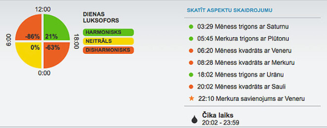 „Paradoksāli, ka tieši šajā dienā Saules kalendārs vēsta: laba zīme ir jebkuri zaudējumi. Tas viss kopā iet roku rokā ar Dižčika laiku, kas kādu savu ziediņu var parādīt arī šajā piektdienā, kaut lielā Dižčika seku parāde un planetārās spriedzes izlāde paredzama 20. – 26. maijā un no 30.maija līdz jūnija vidum. Kā rāda Astrologi.lv dienas astroluksofors, vissarežģītākās ir rīta un vakara stundas.