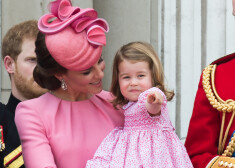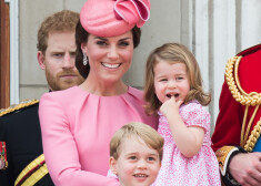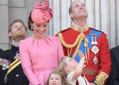 Hercogiene Ketrīna ar bērniem princesi Šarloti un princi Džordžu uz Bekingemas pils balkona vēroja „Trooping The Color” parādi, kas rīkota ...