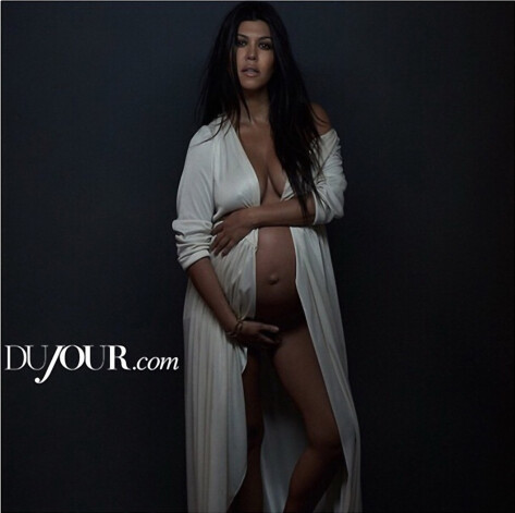 Esot grūtniecības pēdējā mēnesī, 2014. gadā realitātes šovu zvaigzne, Kardašjanu ģimenes atvase Kortnija pozēja žurnāla DuJour vākam un stila lapām. Un, lai arī tā nebija viņas pirmā kailā grūtniecības fotosesija, Kortnija izmantoja iespēju žurnālā paust viedokli par atkailināšanos: „Es par savu ķermeni nekaunos. Kad esmu stāvoklī, esmu vislabākajā formā, un tas ir lielisks ķermeņa transformācijas process. Tas ir skaists un spēka pilns laiks.” Un vislabākajā formā viņa ir pabijusi jau trīs reizes.
