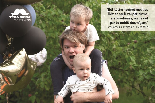 „Būt tētim nozīmē mosties līdz ar sauli vai pat pirms, arī brīvdienās, un nekad par to nebūt dusmīgam,” Everta un Edvīna tētis Toms Grēviņš, „Latvijas Radio 5 - Pieci.lv” dīdžejs.