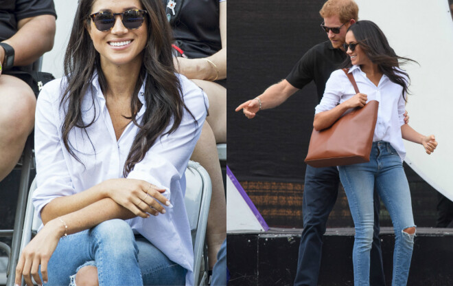 Kā raksta People.com, pāris kopā devās uz ratiņkrēslu tenisa sacensībām, un Megana bija izvēlējusies no pirmā acu skata parastu apģērbu – gaišzilus plēstos džinsus, kurpes ar zemiem papēžiem un brīva piegriezuma baltu kreklu.