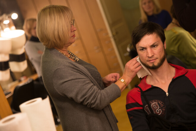 Annija Kopštāle: – Man vistrakāk ir izrādē Bajadēra, kur darbība notiek Indijā, jo ar ūdenskrāsām jānokrāso melni mati, bet jau nākamajā dienā uz citu izrādi vajag atpakaļ dabīgo matu krāsu. Sākumā mēģināju krāsot matus ar krāsojošām putām, taču tās nevarēja atmazgāt. Pēc tam mēs te visas staigājām zaļganrozā nokrāsas matiem.