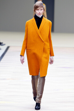 Kamēr citi dizaineri vīriešu apģērba siluetus pielāgo sievietēm, Fēbe Filo nečiepj no čaļiem, bet rada uzreiz sievišķīgus pārlielus mēteļus. Pārlielais zilais mētelis kļuva par 2012. gada fotografētāko izstrādājumu pasaules modes žurnālu stila lapās.