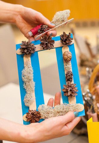 „Izveidotajā rāmī var likt bērna roku vai kāju nospiedumus uz papīra, un ik pēc gada to atkārtot – pēc laika arī bērnam būs interesanti vērot, cik mazs viņš reiz bijis un cik nu liels ir izaudzis,” iesaka pasniedzēja Ance Kļaviņa. Lai vēl vairāk izbaudītu radošo procesu, mākslinieciskās nodarbes iespējams pārvērst „brīvdienu ceļojumā”. Dodieties pastaigā gar jūru, savāciet izskalotos kociņus un akmentiņus, atnesiet mājās un izžāvējiet. Pēc nedēļas dabas materiāli būs pietiekami sausi, lai tos varētu izmantot radošo ideju īstenošanai.