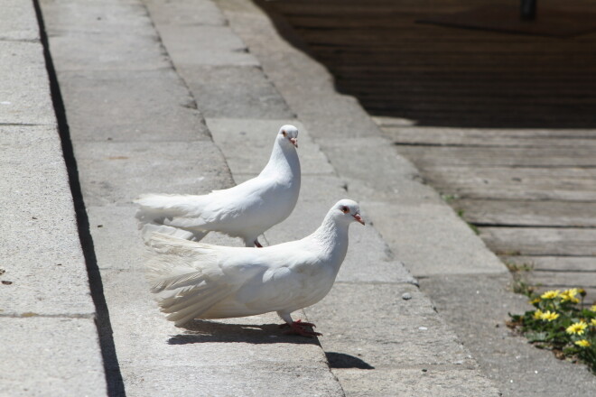 Te! Uz zemes! Sastingstu kā stabs un neticu savām acīm – divas baltas dūjas man tieši pie kājām. Tekalē, groza galvas un pēta mani. Pirmo reizi mūžā savām acīm redzu divas baltas dūjas.