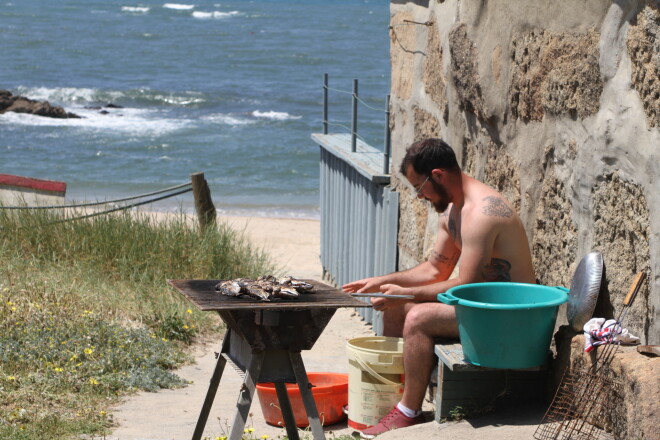 Izpētām zvejas rīkus un nāsis velk mūs virzienā, kur vēdī ceptu zivju smarža. Tur sēž ebreju puisis un nadzīgi kaut ko šķiro lielā bļodā. Blakus uz grila čurkstinās siļkveidīgas zivis. Ejam klāt. Domājam, varbūt var sarunāt pusdienas. Nekā nebij! Jauneklis laipni pastāsta, ka brauc šurp katras brīvdienas, ķer okeānā zivis un šīs te ir pasaules mēroga visdārgākās delikateses – raganu nagi, ko viņš lupina.