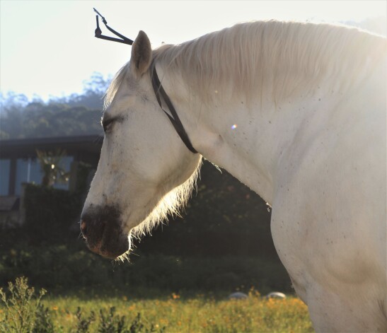 Aiz vārtiem mūs gaida atvainošanās dāvana par negulētu nakti. Vienradzis. Liels, balts, skaists. Nu, labi – vienkārši zirgs, bet rīta saules stari apžilbina un rāda ko pārdabisku. Grozāmies un ņemamies ap šo negaidīti teiksmaino bildi, līdz pamanu, ka atkal tiekam vērotas.