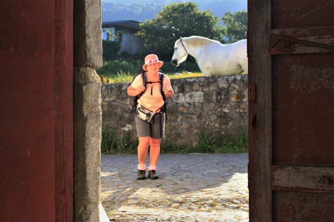 Tādi paši eikaliptu meži, ķirzakas, čūskas un zirgi. Izrādās, ka ne vien riteņbraucējiem ir sava Santjago taka, bet arī zirgmīļiem iespēja pieveikt šo attālumu jāšus. Katarina stāsta savus piedzīvojumus, kamēr gāja bez mums un vairākkārt uzsvēra to, ka tuvojoties pilsētai, cilvēki kļūstot dīvaini. Nevis iet, bet sākot skriet. Divas grupas pat gandrīz tā kā saķērušās – kura kuru apdzīs. Izrādās – skriešanās ir uz alberģi.