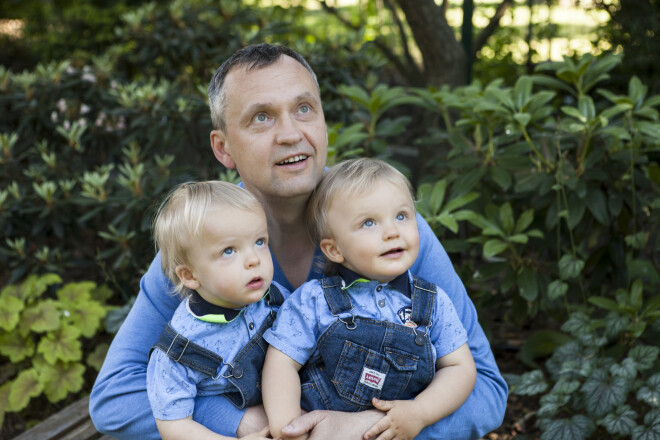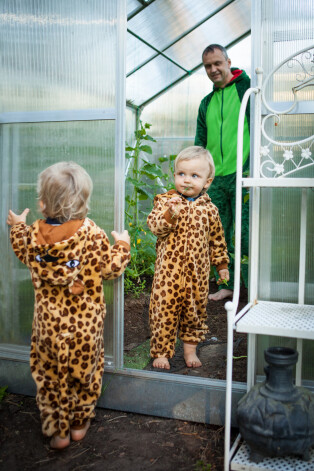 Mikus (vecākais dēls – Red.) runā ļoti labi, divas klases viņš mācījās Viļņā. Agate arī runā, pārējie ne. Ļoti žēl. Mums, visiem pieaugušajiem, jārunā vienā valodā, lai bērnu pieskatīšanā mēs būtu komanda. Tāpēc ikdienā auklītes klātbūtnē runāju latviešu valodā. Tagad ciemos no Itālijas atlidos mana māsa ar pieciem bērniem – arī viņai ir dvīņi, meitenītes. Būs interesanti – kā bērni sarunāsies? Māsas bērni runā itāļu un angļu valodā. Katru gadu mēģinām satikties, kaut kā viņi kopīgu valodu atrod, taču galveno vārdu zina visi – salčuks!