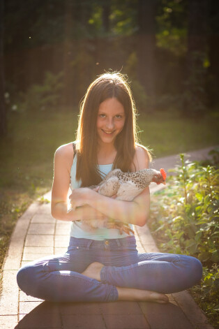 Kā allaž sulīgi rūsganiem matiem, tērpusies baltā un mīļu dzirkstelīti acīs, aktrise un sešu bērnu mamma Aurēlija Anužīte-Lauciņa sagaida mani Mežaparkā pie savas priežu un saules ieskautās ģimenes mājas. Aurēlija izrāda pagalmu: tajā ir bērnudārza cienīgs, skaists rotaļlaukums, neliela siltumnīca, kurā gozējas spīdīgi tomāti un sulīgi gurķi, vistu sēta. “Mums katru dienu ir trīs svaigas olas,” Aurēlija līksmi saka un pastāsta, ka viena no vistām izperējusi arī cālēnus. Kamēr Aurēlija vāra piparmētru tēju un servē melleņu pīrāgu, bērni (vecākajam 23 gadi, jaunākajiem tūdaļ būs divi gadi) man parāda ezīti, kurš nu kļuvis par viņu mājdzīvnieku.