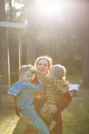 Domāju, ka tāpat salīdzinoši daudz kliedzu (smejas). Reizēm tas ir neizbēgami tikai tāpēc, ka, ja tev ir trīs mazi bērni, bīstamas situācijas, kuras jāaptur, arī rodas trīs reizes biežāk. Es mazliet esmu pastudējusi Montesori metodi, arī bērni gāja Montesori dārziņā.