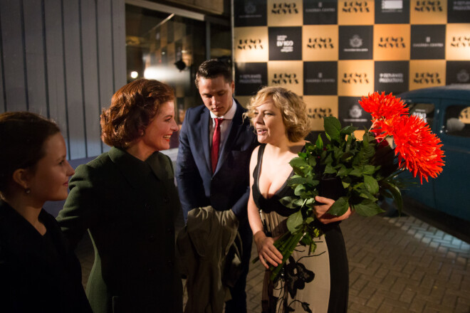 Tirdzniecības centrā "Galerija Centrs" 30. gadu atmosfērā ar faniem tikšanos un autogrāfu sesiju sarīkoja jaunās spēlfilmas "Homo Novus" aktieri.