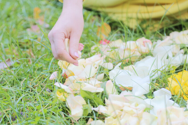 – No veikaliem nāk atpakaļ ļoti daudz ziedu, arī rozes, tad kāpēc tās vienkārši izmest? Es tām radu vēl vienu iespēju runāt ar cilvēkiem, viņus iepriecināt. Ziedlapiņas plūcu un pa krāsām šķiroju pēc darba. Lai gan esmu nogurusi, dažkārt pat pārgurusi, tomēr sevi disciplinēju, jo zinu, ka pēc tam būšu gandarīta – no rīta varēšu sapucēties un braukt uz mežu skaista.