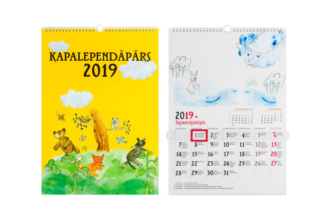 Unikāls pāršķiramais sienas kalendārs pupiņu valodā 2019. gadam.