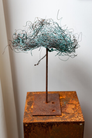 Ciemojoties Bondaru ģimenes mājoklī, pārsteidz, ka interjerā iekļautas arī interesantas instalācijas no sarūsējušām stieplēm. Ieva atzīstas, ka šī ir pirmā reize, kad viņa nobriedusi tos parādīt un atklāt, kā top viņas savdabīgie drāšu mākslas priekšmeti. „Nesarūsējušo drāšu saišķis ir no manas pirmās gleznu personālizstādes – tajā esmu salikusi visas drātis, neskaitāmus metrus, kurās pie sienas bija piekārtas manas gleznas. Tā ir personiska piemiņa no tās pirmās reizes. Bet pārējās stieples esmu salasījusi pastaigās. Tagad jau ir tā, ka diezgan apzināti ielienu... nu, ne gluži miskastēs un izgāztuvēs, bet tuvu tam. Meklēju un rokos.”