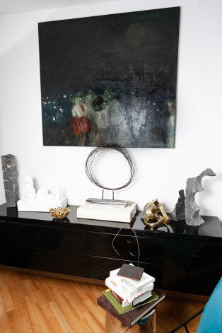 Tad pati izprātoju, kā kamīnu pasargāt no kaķa. Klasisks aizbīdnis nederēja, jo, uzlecot virsū, to var apgāzt. Tad devos pie metāla kalēja ar izmēriem un aptuveno konstrukcijas dizainu – melnu, uz ritentiņiem, lai varu nobīdīt. Tagad šis aizslietnis lieliski iekļaujas interjerā, un, kad nekurinām kamīnu, tā priekšā sadedzam sveces,” rāda Ieva.