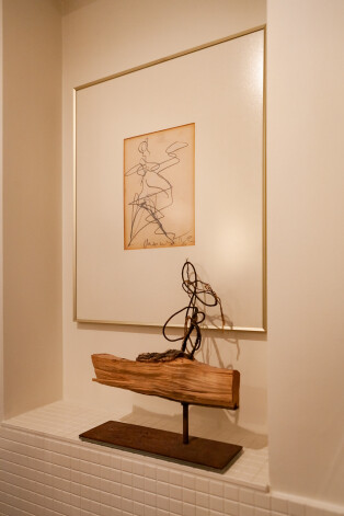 „Vienā šķūnītī atradu drāti, kurā saskatīju dejojošus cilvēkus, un izliku to mākslas darbā. Atcerējos, ka man kaut kur ir Arnolda Plaudīša dāvināts darbs. Tas bija 1963. gads, kad viņš šos dejotājus zīmēja, un man liekas, ka šis mans drāšu mākslas darbs ar to ir kā viens pret vienu! Tagad tos saliku kopā. Tā ir nesaprotama saikne man ar savu pasniedzēju,” uzskata Ieva.