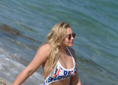 Modele Iskra Lorensa nesen Maiami pludmalē (ASV) piedalījusies peldkostīmu fotosesijā.