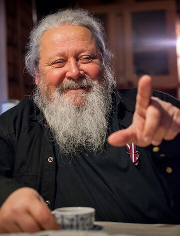 Gadījusies jocīga diena – ietinusies zilganpelēkas miglas paltrakā, neļauj saredzēt tālāk par dažiem metriem. Tomēr es zinu, ka miglas putrā iejauktais Kāla ezers jeb, pareizāk, Kāla okeāns, kā sacītu Haralda draugs Ņurbulis (dzejnieks Aivars Neibarts), ir liels un gleznains. Tā malā, pāri ceļam, ir akmens drupas, kur vasarās Haralds mēdz ne vien muzicēt, bet arī nakšņot. Guļbaļķu mājai nedaudz augstāk kalnā dots debešķīgi jauko vietu raksturojošs vārds – Sapņi. Kādā logā dreb silta gaisma. Durvīs parādās viņš – apaļīgs, labākajos gados, ar raksturīgo bārdu, garo matu sīkajām cirtām un gandrīz nekad nenorietošu smaidu. Haralds mūs uzņem sena drauga, vides aktīvista Jura Putriņa mājā, jo ģimene kopš 2012. gada, kad nodega viņu meža māja, joprojām mitinās šaurā pagaidu dzīvesvietā.