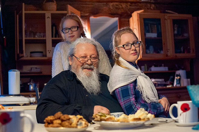 Atsprāgst durvis, un tajās parādās Gita ar meitām. “Mēs bijām trīs māsiņas, visas mīļi dzīvojām,” viņa apķer Martu un Santu. Vienai ir sešpadsmit, otrai – divpadsmit gadu. Abas pa vasaru izstiepušās galvastiesu garākas par mammu. Gitai piemīt sievišķīgs talants uzburt mājīgumu – iededzas svece, sāk smaržot kafija, meitenes sildās pie krāsns. “Otrs disks būs tāds kaujiniecisks,” rāmi turpina Haralds. “Pret rietu gaisma iet, trīs, jūru dzirdot, strauts, guļ atbalss debesīs, neviena nepasaukts.”