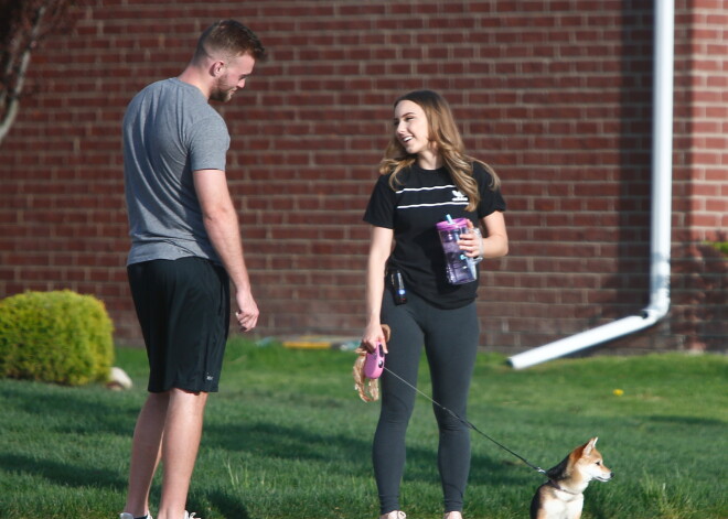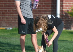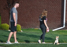 Eminema meita Heilija ar draugu ved pastaigā sunīti