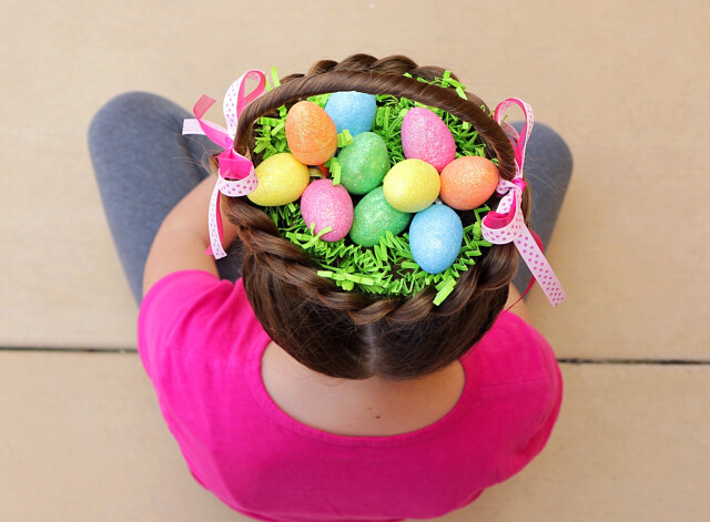 Izmantojot matu sprādzes, lentes, gumijas, nelielas Lieldienu oliņas, kā arī citus aksesuārus, iespējams tikt pie frizūras, kas izskatās pēc groziņa ar krāsainām olām.