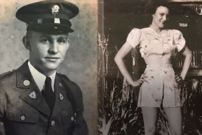Abi jaunieši 1944.gadā iemīlējušies no pirmā acu skatiena. Tolaik varonīgajam kareivim bija 24 gadi, bet valdzinošajai francūzietei - 18.