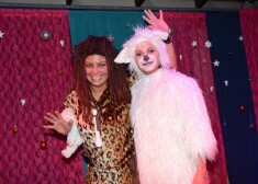 Ieva Pļavniece un Anamika Goldberga 2015. gadu sagaidīja tērpušās maskās.