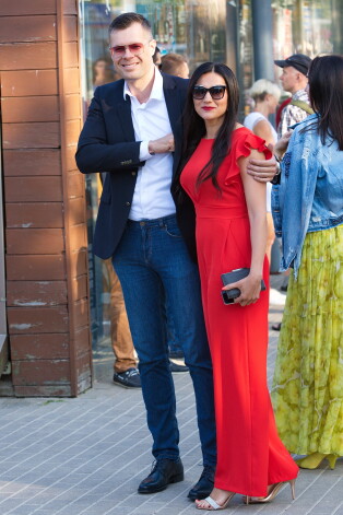 Bondaru ģimenei izdodas arī ar modes palīdzību sevi pozicionēt kā harmonisku un perfektu duetu. Nepretenciozi, izsmalcināti, gaumīgi un eleganti! Īpaši uzteicams ir mākslinieces tonāli smalkais, it kā neitrālais komplekts, kurā dinamiku un tā saukto odziņu piešķir kleitas mirdzošais audums un kontrastējoši sārtās kurpes.