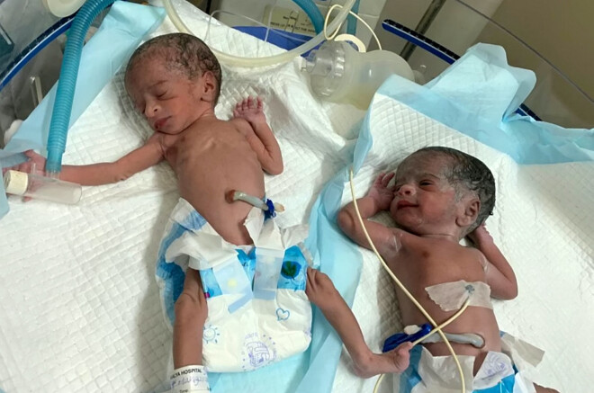 Abas dvīņu meitenītes pasaulē nākušas ar ķeizargriezienu, kas tiek uzskatīta par ierastu dzemdību metodi šādos gadījumos.