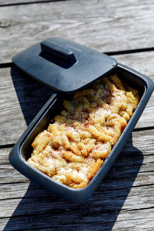 2. Izvēlas cepamtrauku ar vāku, to ieeļļo.