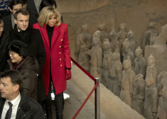 Emanuels Makrons ar pirmo lēdiju Brižitu viesojas Ķīnā.